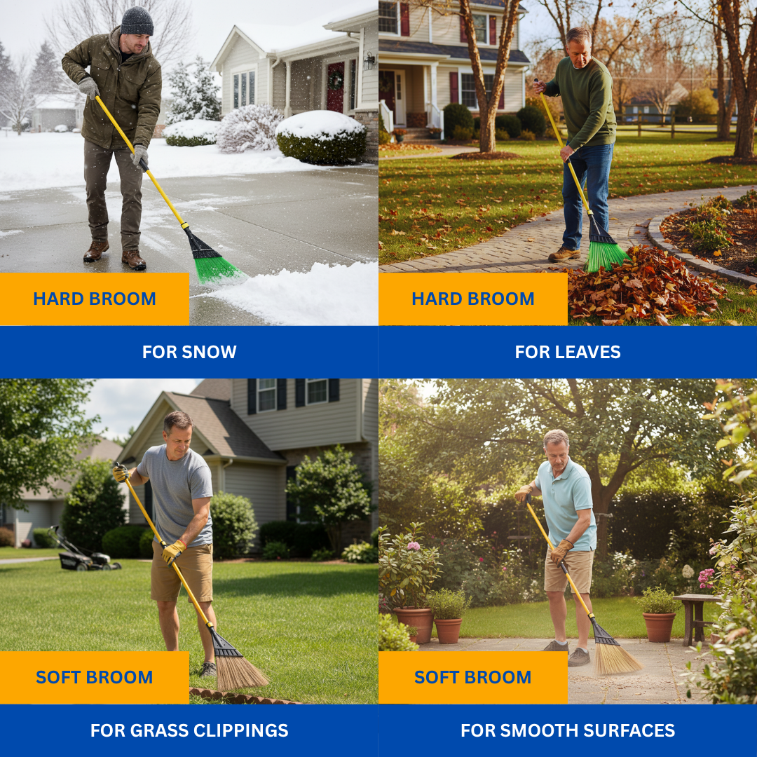 Soft Type : Suitable for cleaning leaves and trash, and the soft and hard mixed brush allow smooth sweeping.